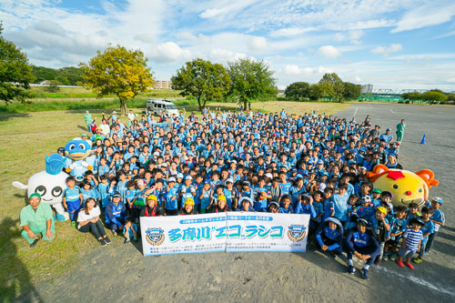 川崎フロンターレ選手会が、川崎市、とどろき水辺の楽校、国土交通省と共催し、サポーター参加型で多摩川の清掃活動と、多摩川により親しみを持ってもらうための体験学習を2008年から継続的に行っています。