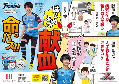 川崎市健康福祉局と神奈川県赤十字血液センターが共同で行っている献血啓発活動に、選手ポスター参加や「噂のケンケツSHOW」と銘打ったホームゲームイベントを開催し、献血啓発を2009年から行っています。