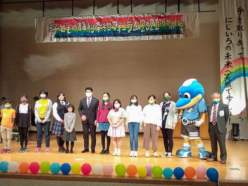 川崎市と子どもを取り巻く環境や課題について全国から関係者が集い、意見交換する「子どもの権利条約フォーラム」にマスコットが出演し啓発活動を行っています。