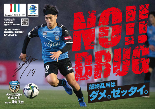 川崎市健康福祉局と麻薬、覚せい剤等の薬物乱用防止を推進するため厚生労働省等が主催する「ダメ。ゼッタイ。」普及運動啓発ポスターに1999年から継続して協力し、啓発活動を行っています。
