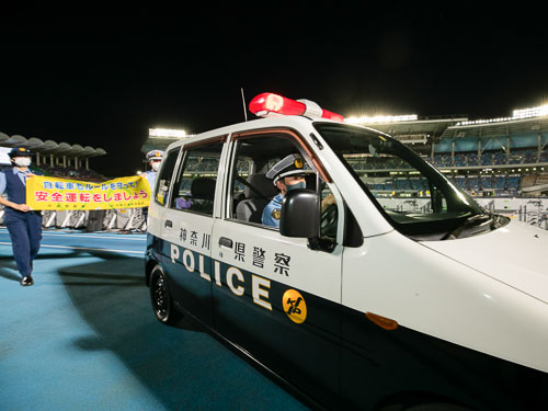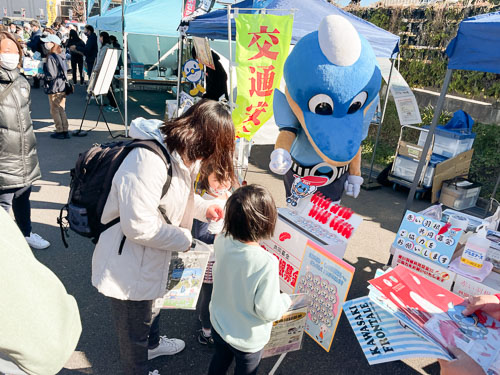 川交通事故や犯罪被害を防止するため、等々力競技場でのホームゲームで来場する市民の皆さんを対象に、交通安全及び地域防犯に関する啓発活動を実施しています。