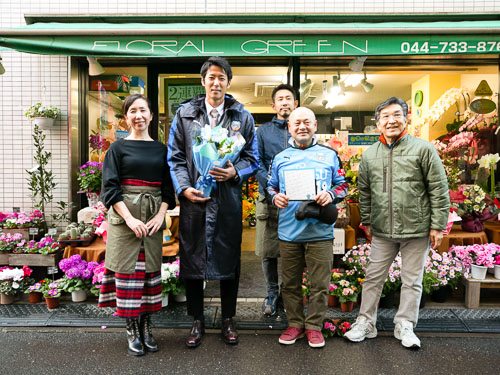 川崎フロンターレの選手が川崎市内の商店街の皆さんに新シーズンのご挨拶に伺います。商店街とプロサッカークラブが連携して、地域と地域住民のつながりの強化を目指しています。