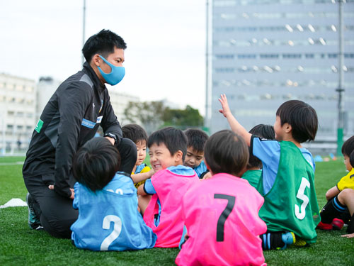 「FOOTBALL TOGETHER~川崎とともに~」を理念に、サッカーを中心にボールを用いる運動を通して、子どもたちの心身の健全な発達に寄与することを目的に、1997年のクラブ創設時から行っています。
