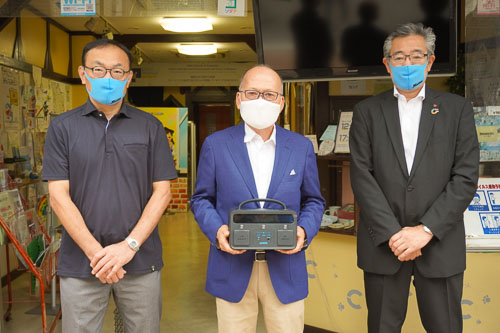 川崎信用金庫と連携し、中原区商店街連合会に災害時やイベント時のための蓄電池を作るクラブパートナー企業を紹介。災害時の電子機器充電や車中泊での照明を使用可能とすることで持続的なまちづくりを推進しています。
