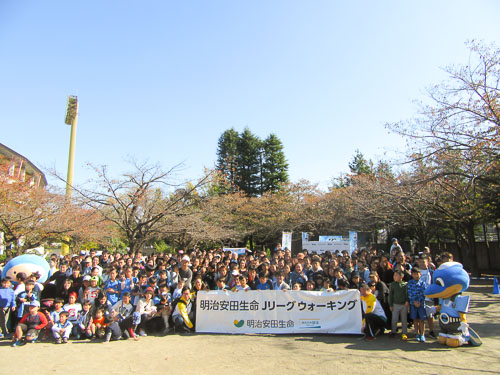 明治安田生命とJリーグやJクラブがタイアップして、地域の皆さんが地元のJクラブ選手等と楽しみながら一緒に歩くことで、健康づくりを応援していくウォーキングプロジェクトを実施しています。