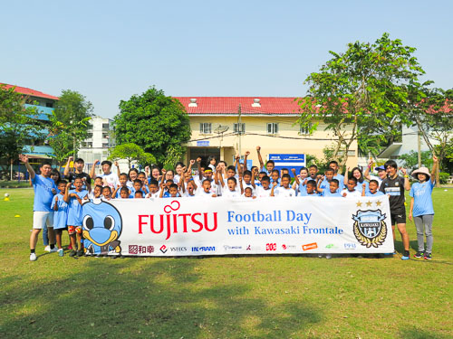 ビンズン省で街づくりを進める東急グループと、フロンターレのユニフォームやベトナムでの活動時に作成したTシャツやボールをお渡しし、子どもたちとのミニゲーム等の実施で、多くの笑顔が生まれました。