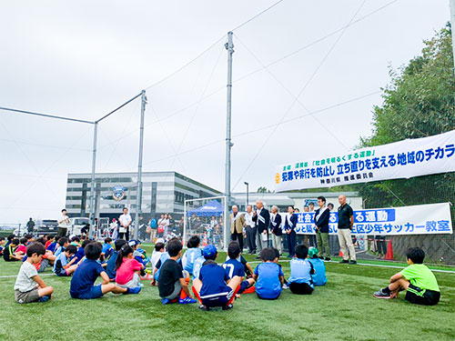 SBIいきいき少額短期保険と共に、将来を担うこどもたちが健やかに成⾧することを願い、2016年より岩手県大船渡市で地元の小中学生対象のサッカー教室、未就学児童対象の親子レクリエーションを開催しています。