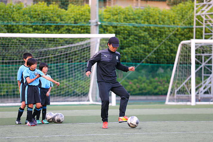 例えばジュニア年代の場合、川崎フロンターレアカデミーでは技術をしっかり磨くことをコンセプトとして打ち出しています。そのためには、パスやシュートはもちろんのこと、ボールの運び方(ドリブル、ターン)や駆け引き(フェイント)などにもさまざまな要素が含まれていますから、それらの習得にはどうしても時間が必要になります。つまり、練習「量」がものをいうのです。