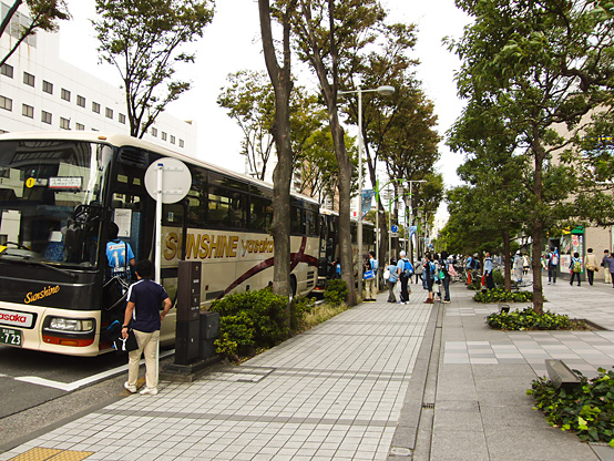 すっかり秋の気配が漂い始めた10月1日早朝。武蔵小杉タワープレイス前にサックスブルーに身を包んだ人たちが続々と集まってきます。この集団はもちろん、山梨中銀スタジアムで行われるヴァンフォーレ甲府戦のJTBアウェイツアー参加者の皆さん。久々のデーゲーム(しかも13時キックオフ!)ということで、出発は7時30分と大変早い時間帯となったのですが、バス7台、288名の皆さんにご参加いただきました。
