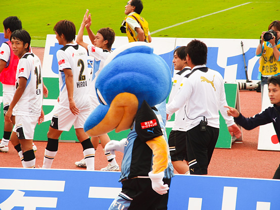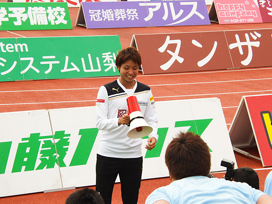 さて、お次は広報からのこぼれ話。今回はモバフロでブログをスタートさせたばかりのナツこと棗佑喜選手の素顔を選手たちが語ってくれました。どうやらキーワードは「駒大」「福井」「天然」といったところでしょうか。実はこれまで出場した3試合がいずれも等々力という棗選手。今度はぜひアウェイゲームでも活躍して、ツアー参加者の皆さんを喜ばせてほしいものです。