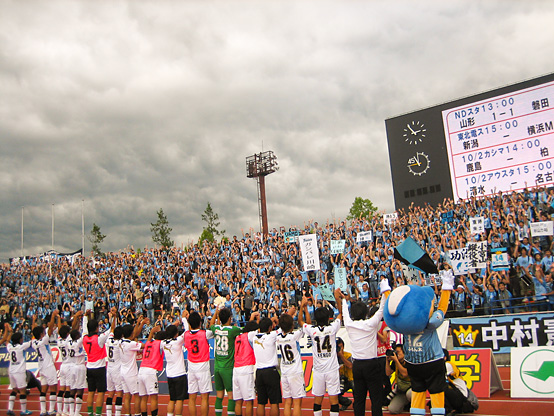 試合のほうは皆さんご存知の通り、ユウの挙げた虎の子の1点を、リキを中心に全員で守りきり1-0で勝利。等々力と変わらぬ大声援を送ってくれたサポーターの皆さんに、しっかりと勝点3をプレゼントしてくれました。帰りは若干渋滞に巻き込まれましたが、それも勝利の余韻を長く味わうための神様からのプレゼント!? 19時過ぎに全7台、無事に武蔵小杉へと帰ってきました。