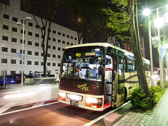 武蔵小杉を出発したバスは調布ICから中央自動車道に入り、一路西へ向かいます。車内ではアウェイツアー恒例のビンゴ大会がスタート。今回は何と4人に1人の割合でJTBアウェイツアー限定のオリジナルタオルマフラーが当たるという大盤振る舞い。今回はコーセイバージョンだったのですが、「19 SHIBASAKI」のナンバー・ネーム入りのアウェイユニフォームを着ている方に当たるという偶然の一致もあり、大いに盛り上がりました。