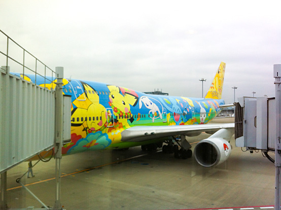 お集まりいただいた27名様に航空券をお渡しし、いざ札幌へ出発!そしてここで最初のサプライズ!ご利用の航空機がなんと「ポケモンジェット」でした。まあ完全に偶然なんですが、これには参加者の皆様も若干興奮していましたよ(笑)
