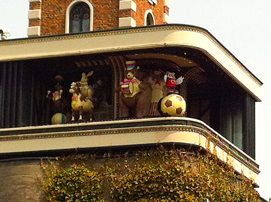 バスガイドさんの案内を聞きながら、大通り公園や時計台を車窓観光しつつ、最初の観光スポットは白い恋人パーク。こちらでは北海道みやげの大人気商品「白い恋人」の工場見学やショッピングをそれぞれお楽しみいただきました。昨日の対戦相手、コンサドーレ札幌の練習グラウンドも併設されていて、そちらに見学に行かれている方も多かったです。
