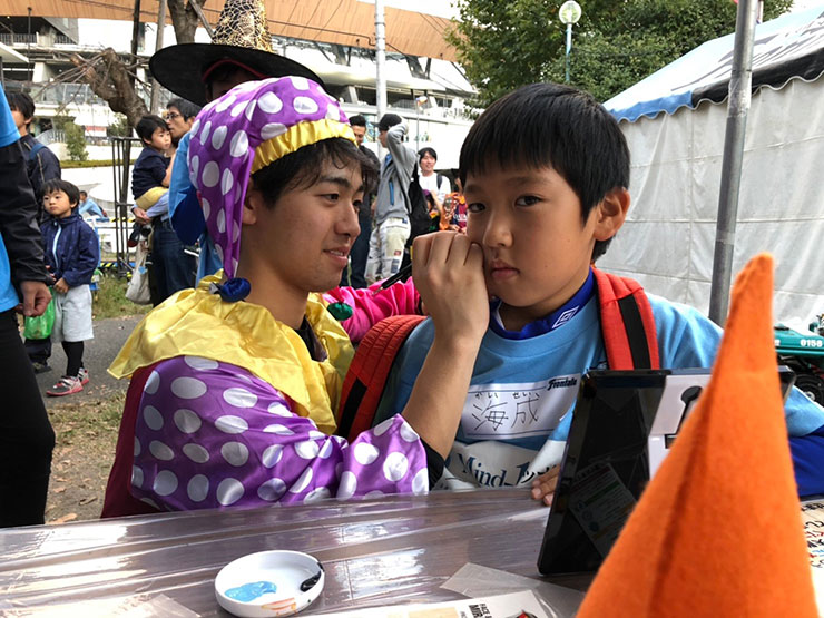 そうこうしている内に、フロンパークの開園時間を迎えます。事前に車中や旅のしおりでフロンパークの情報を入念にチェックしていたみなさん。そのため、今回のフロンパークでは「フェイスペイントブース」に注目が集まりました。なぜなら、陸前高田市出身で1回目の修学旅行に参加していた菅野朔太郎くんがこのブースを運営していたため、頑張っている姿を一目見ようと多くの方々ブースを訪ね、久しぶりの再会を楽しんでいました!