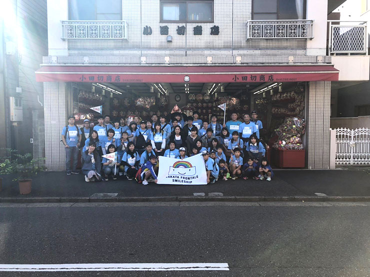 2日目は川崎市内観光です。まず、はじめに一行は川崎大師へ。到着後、小田切商店へ向かいました。長年、フロンターレ特製のだるまでお世話になっている小田切さんに挨拶をしていただき、みなさんへお土産もご用意いただきました。その後は、各班に分かれて自由行動。お土産を買ったり、おみくじを引いたりと各々の時間を楽しんでいました。そして、今回、川崎大師の特別なご協力により「護摩祈祷」に参加させていただきました。川崎フロンターレの選手たちも毎年必勝祈願で行っていますが、選手たちと同様な流れでご案内をしていただきました。また、祈祷後、陸前高田より来ているお坊さんのご挨拶もいただきました。まさか川崎でこのように「陸前高田」のつながりが生まれると想像もしていなかったため、参加者のみなさんも自然と笑みがこぼれていました。