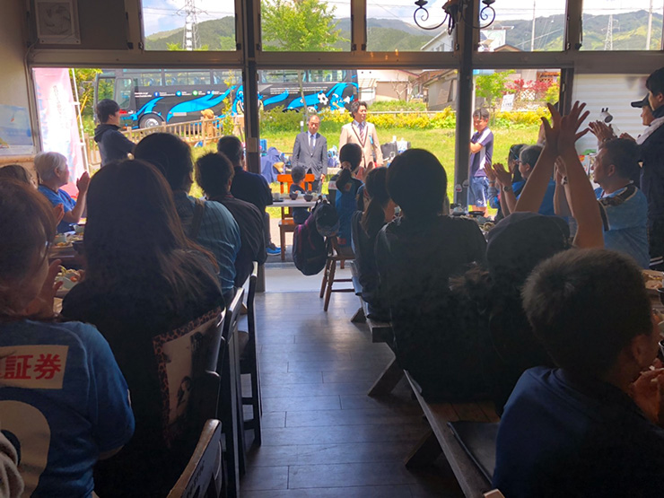 そして、ここまで一緒に走ってきてくれた旧選手バスとはここでお別れのお時間。安全運転で陸前高田まで送ってくれたバスとドライバーさんに、みんなでお礼を言ってお別れをしました。ドライバーさん、安全運転ありがとうございました!!