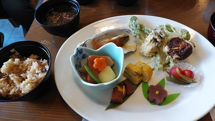 お昼ご飯は、こちらも「陸前高田ランド」でおなじみの「カフェフードバーわいわい」さんへ。陸前高田の食材を使った絶品定食をいただきました。おいしい「ごはんとみそ汁」は何とおかわりOK! 店内では「おかわり!」の声があちらこちらから飛び交っていました。