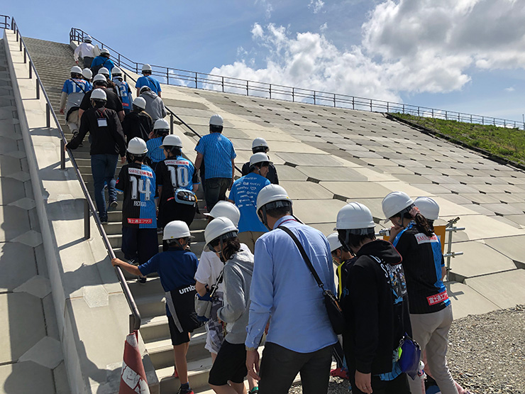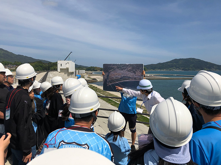 昼食の後は、当日の新幹線での参加の方と合流し、移動。普段は入ることのできない防潮堤を特別に見学させていただきました。