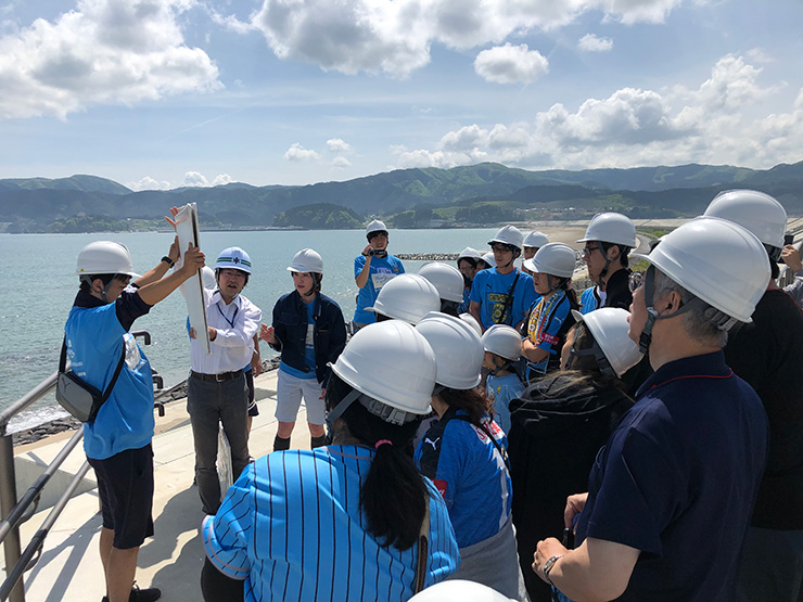 土木センターの方からのお話を皆さん真剣に聞いていました。綺麗で穏やかな海でしたが、震災当時の状況などお話を伺い、まだまだ復興は途中であるということを改めて強く認識をしました。
