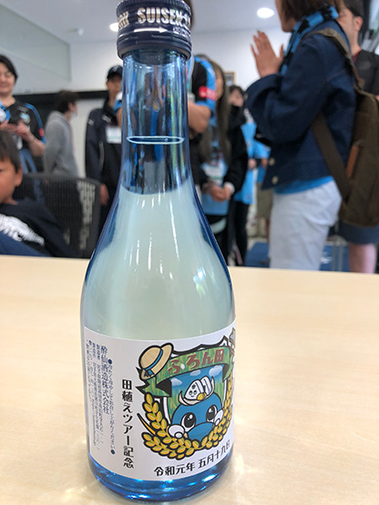 大人たちは大興奮で女性を中心にほとんどの方がおかわりしていました。見学も全て終えた帰り際、酔仙酒造さんからサプライズが!! なんと「ふろん田」のロゴがプリントされた完全非売品の日本酒を参加者全員にお土産としてプレゼントしていただきました!! これには一同大喜び。酔仙酒造さんありがとうございます!!