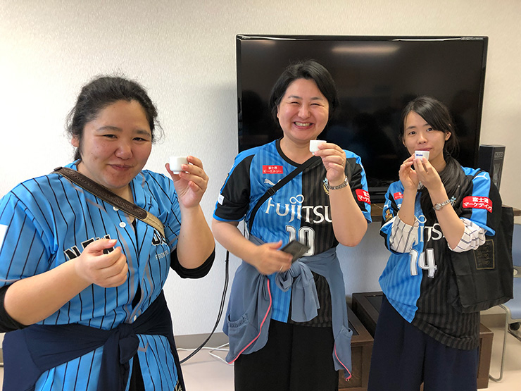 笑顔のブーイングの中(笑)何本もPKを止め、見事に「チーム1」が優勝を果たし、陸前高田市のブランド米「たかたのゆめ」と「フロンターレグッズ盛り合わせ」をゲットしました!!
