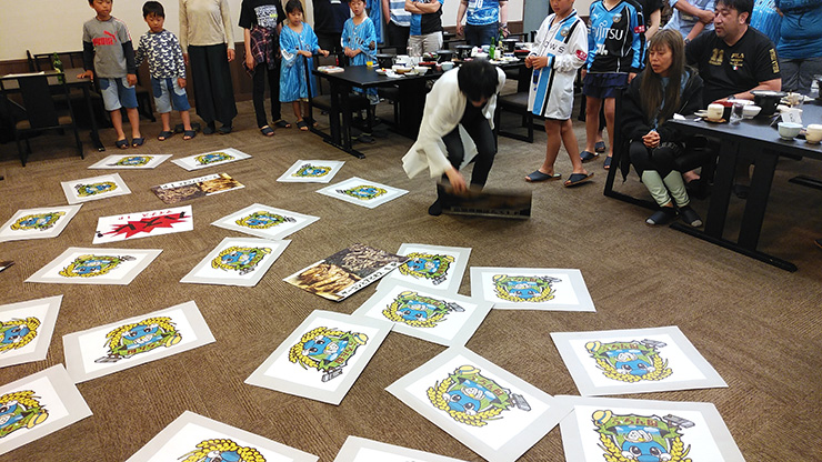 最初のゲームは、「巨大神経衰弱」です。裏面には今回の「ふろん田」のロゴを使い、表面には陸前高田の名産品が写真と共に掲載されています。大人も子ども関係なくかけ回りながら神経衰弱を楽しんでいました!
