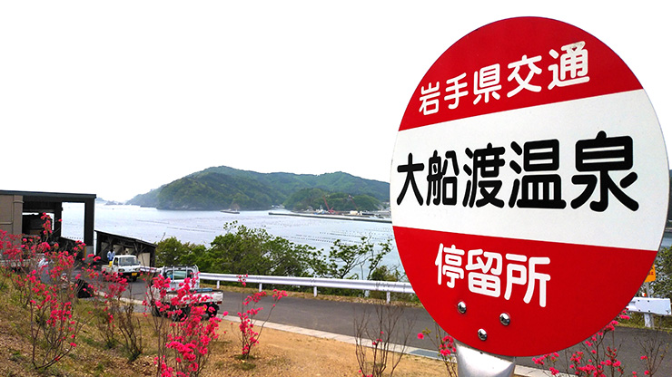 翌日になり、田植えの本番日。農業ゲームの後に皆さんにお配りしたオリジナルTシャツを参加者全員身が身にまとい、大船渡温泉を出発します! 出発の際、大船渡温泉の従業員の方がお米の豊作を願い、大漁旗を大きく振ってバスを見送ってくださいました!