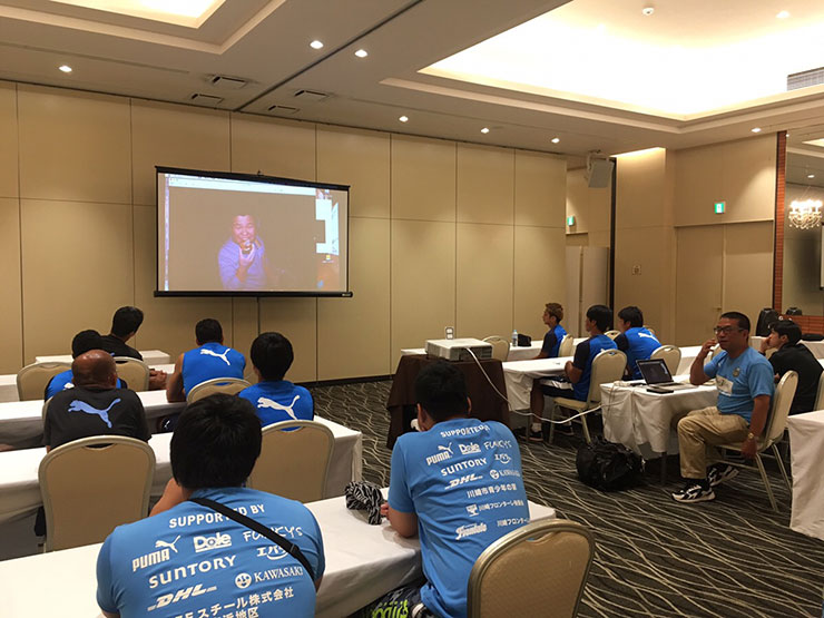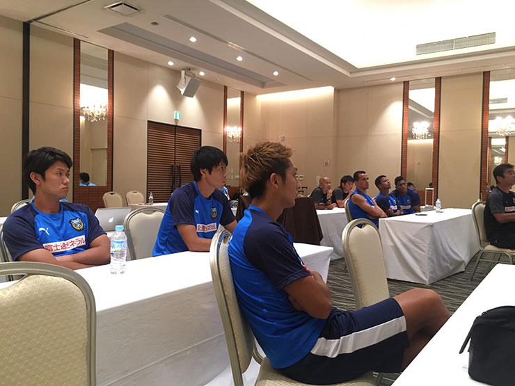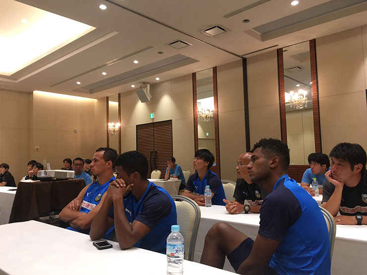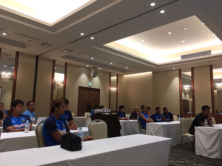 選手達はまずキャピタルホテル1000に集合し、今回の活動の経緯、これから開催されるサッカー教室についての取り組みについて説明を聞きました。