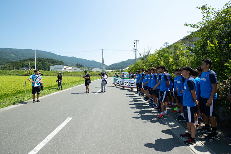 選手達は前日にアウェイ仙台戦後、仙台に宿泊し、当日の早朝に陸前高田市に移動しました。