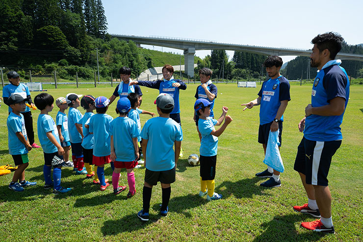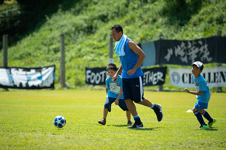 毎回思うのですが、子ども達よりも選手達も負けないくらい楽しそうにボールを蹴っているのを感じます。普段、試合だと真剣な表情が多くみられるので、そのギャップも大きく、広いグラウンドで楽しそうにボールを蹴っている姿は非常に印象的です。