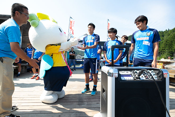 と、その前に高田FCから今年結婚した選手達へ、陸前高田フロンターレサポーターずから8月生まれの選手達へ、それぞれプレゼントのサプライズ! プレゼントを受け取った選手達は喜んでお礼を伝えていましたよ。
