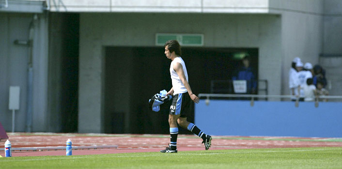 リベロとしてのデビュー戦は、J2も終盤となった42節だった。箕輪の負傷により伊藤(宏)、岡山と組んだ。その日は、すでに昇格を決めていた大分の優勝がかかった一戦だった。