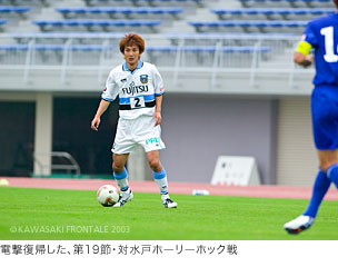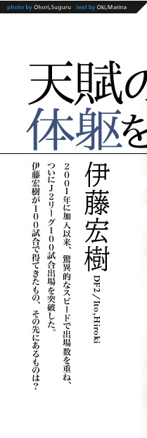 | さらに、高畠コーチが言葉を続けた。 「能力を持て余している、とも言えるかもしれない。きれいなプレーを好む選手だけど、勝つためには泥臭いプレーも必要。いまのプレーが良かったのか、悪かったならどう対処すれば良かったかということを、ひとつひとつ考えさせて、だんだん自分で判断や説明がつくようになってきた。“意識”がさらに高まっていけば、能力から言えば代表にも近いと思うんやけどね」 エジソンコーチは「上をめざすなら、もっと声を出せる選手になることが絶対に必要」とエールを送る。 いまは、目の前の試合に勝つことだけを考えたい、という。あっという間の100試合で、そのなかの1戦を強烈に記憶していることはない、という。伊藤宏樹のなかで感情が剥き出しになるような経験は、まだこの先に残されているのである。 「僕が入ったときにJ2にチームが落ちたんですけど、いま思うと、もし、J1のままやったら試合に出られなかったでしょうね。いまはJ1に上がりたいという気持ちが強いです。そこがスタートだと思ってます」 2001年、立命館大学より川崎フロンターレに加入。初年度から不動のDFとして出場し、今季はリーグ戦100試合出場を達成している。1978年7月27日生まれ、愛媛県出身。183cm、74kg。 |