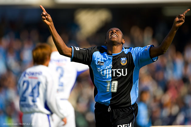 それにしても、ものすごい記録である。ガンバ戦以前にジュニーニョが出場した試合数は84。そのうち71のゴールを決めた48試合で、フロンターレは38勝10分0敗という成績を残していた。