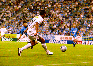 フッキの目に入ってきたのは、ゴール前に入ってきたジュニーニョだった。ジュニーニョにパスを出そう。一度はそう思ったが、ジュビロDFがマークする姿が見え、「よし、勝負だ」と心は決まった。