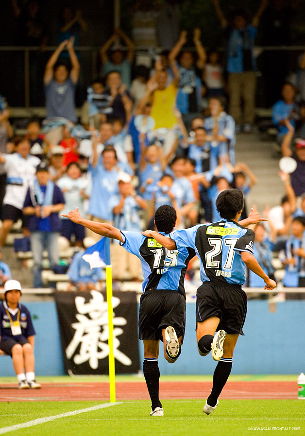 技ありのゴールに、スタンドは一瞬の間があってから、ワーッと歓声が沸き起こり、フッキをフロンターレイレブンが取り囲んだ。目の前のゴール裏に陣取るサポーターに向けて、フッキは何度もガッツポーズを送った。