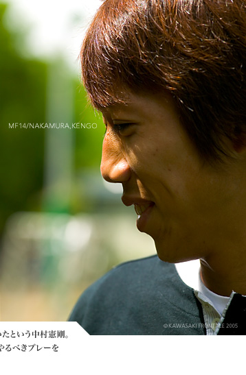 「後ろ向きになる要素なんてない。だって、試合は続いていくんだもん。そうそう、ジーコがたまに試合を観るくるでしょう。代表に入りたいとかいう話じゃなくって、記憶に留めてもらえるプレーがしたい。『あの14番いいな』って少しぐらい思ってもらいたい。まだ自分が全然だめなのもわかってるんだけど、評価もしてもらいたい。そんなの甘ったれだけどね。有無を言わさず、みんなに『あいつはすげぇ!』って言われるようにならないと」 それからふっと間があいて、ポツリと言った。 「俺ね、目標がわからないんです」 ‐それは、どういう意味? 「いつもいつも先を追い求めている感じ。いつももっとうまくなりたいって思っていて、課題を見つけてそれを克服しての連続だから、どんどんやることが先にある。何歳になってもあいつは必要だって言われる選手でいたいし、やれるものなら40歳ぐらいまでやっていたい。きっと、求めるものがなくなったら、うん、たぶんそのときが引退するときなのかもしれないね」 常に頭のなかに自分が思い描くイメージをふわっと膨らませている中村憲剛。そこに限りなく近づくための終わりなきチャレンジは続く。