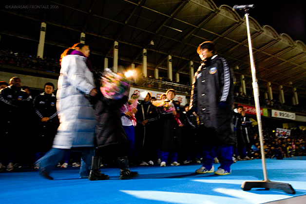 | 最後のフロンターレのインタビューで、オヤジくさいことを言っているかもしれないけど、そういう話を振っていただいたので答えると、やっぱり僕は『ありがとう』という気持ちを素直に表現できてほしいなぁと思います。だって、チケット代払ってバスツアーでナイターの試合に来てくれるわけじゃないですか。仕事じゃなくて、自分のお金と時間を使ってね。鹿島のときも、東京から家族4人で観に来てくれるとなると、ディズニーランドに行くのと同じだけお金がかかる。要は、どっちにエンターテイメントがあるかってことなんです。そこで最後に選手みんなで頭を下げてくれることによって、『よかったなぁ』って思って帰れるかどうかなんです。その最後の印象って大きいですよね」 ──感謝の気持ちを表現できることは、大事なことですね。 「それは、サポーター以外に対しても同じです。掃除をしてもらったり、ボールやユニホームを用意してもらったり、グラウンドを整備してもらったり、いろんな人たちが協力してくれている。もちろん仕事なんだからやってもらうのは当たり前だし、お互いに責任をきちんともってやることは大事。でもそこに、必ず感謝やお互いを尊重する気持ちがないとダメだと思う。その人が選手じゃないから、サッカーがうまくないからってバカにすることではないしね。大学のとき、サッカーがうまくなくてもサッカーが好きで体育会に入ってくる人もいたんですよ。なかには一生懸命やっていても、サッカーがへただからとバカにしちゃう態度をとる人もいたけど、それは本当に違うと思う。目標もってはいってきた人間が、好きでサッカーをやっているんだから、そこはサッカーがうまい、下手じゃなくて“人”として見ていかないといけない。そういう人間関係については、その時期に考えさせられたかなって思ってます」 ──お互いを人として尊重しあうということですね。 「どっちかが上に立とうとするのが違うと思うんです。お互いに尊重しあってお互いの存在を認めてお互いの主張を認める。もちろん、すべてを認められるわけじゃないけど。これからフロンターレがもっと大きくなっていくうえでは、サポーターはもっと増えていかなければいけないだろうし、そのなかでサポーター内でいろいろなことも起きるかもしれないし、クラブともなにか起きることもあるかもしれない。でも、いま言った大事なところをお互いに忘れていなければいいと思う」 |