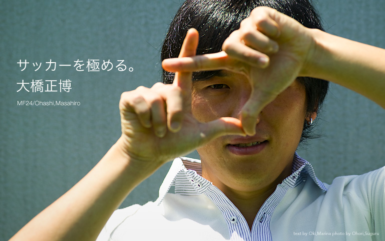 大橋は、根っからのサッカー小僧で、自分なりのサッカー観をしっかりともち、なによりサッカーが大好きなことが話をしてみるとストレートに伝わってくる。サッカーのことで、はちきれそうな程つまった大橋の頭の中には、自分だけのピッチがあり、そこを覗いてみることができたらばファンタジスタたちによるスペクタクルなサッカーシーンが際限なく繰り広げられているはずだ。「そうなんです。僕の頭のなかではバルサやレアルのようなハイライトシーンが流れているんですよ。こういう風にできたらいいのになぁというプレーは頭のなかにいっぱいあるんですけど、実際は、なかなか頭のようにはうまくいかないのが現実ですよね。サッカーには同じ場面がないし、だからこそ面白いわけだし」