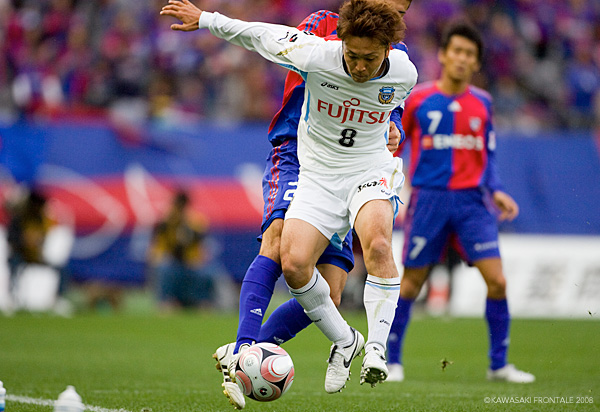 今シーズンの補強の目玉として、ジェフ千葉からフロンターレに加わった山岸智。「まだまだです」と本人も語るとおり、完璧にチームにフィットしたとはいい難いが、それでも“走る”ことをベースにした献身的なプレーは、フロンターレの左サイドに新しい風を吹き込んでいる。トータルバランスに優れたサイドアタッカーがチームと完全融合を果たしたとき、フロンターレは唯一無二の武器を手に入れる。コンビネーションが熟成されてこそ、イビチャ・オシムの申し子の本領発揮といったところだろう。
