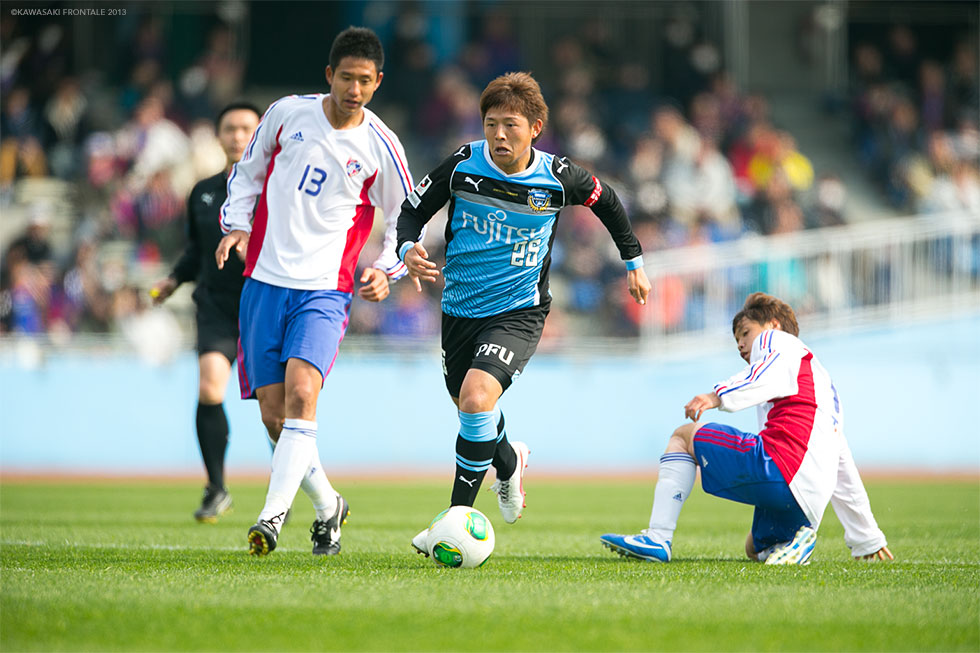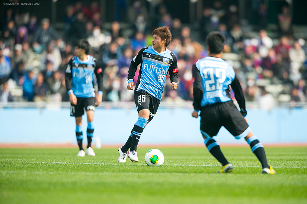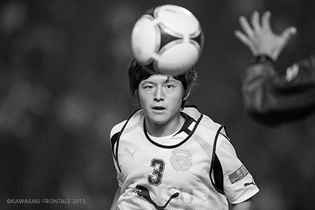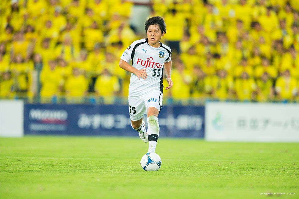 昨シーズン途中にJFA・Jリーグ特別指定選手として登録され、筑波大学に籍を置いたまま完全移籍という異例のケースでフロンターレに加入した山越享太郎。腰を落ち着けてサッカーに専念できる環境が整った2013年。選手個々のプレーの質の高さが求められるチームにおいて日々プレーの幅を広げている。