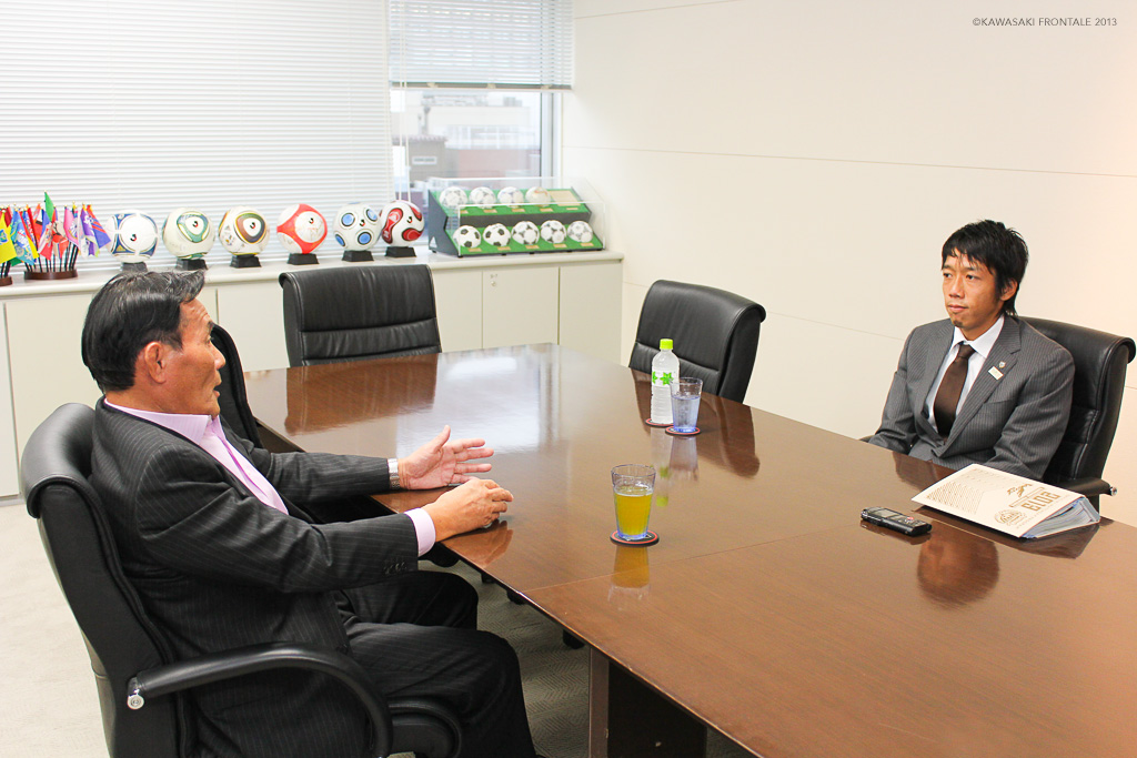 その理由は武田社長にも聞きましたが、だいたいの予想はついていました。Jリーグの人気が落ちてきたのは自分たち選手にも責任があるし、Jリーグだけのせいだとは思いません。ただ、僕がフロンターレに入ったのが03年で、スタジアムに3、4千人しかお客さんが入ってないところから、どうやってお客さんを増やしていくかっていうことをみんなで考えてきました。スタジアムが満員になるまで選手もスタッフも本当にいろいろなことをやってきて、自分たちの努力が認められてきたという自負があるんです。その一方でJリーグは、果たしてそこまでやってきたのかなっていうのが正直なところです。できることはすべてやったけど、どうしようもないからこうなったっていう風には僕には見えなかったので。まぁ、今さらなんですけど」