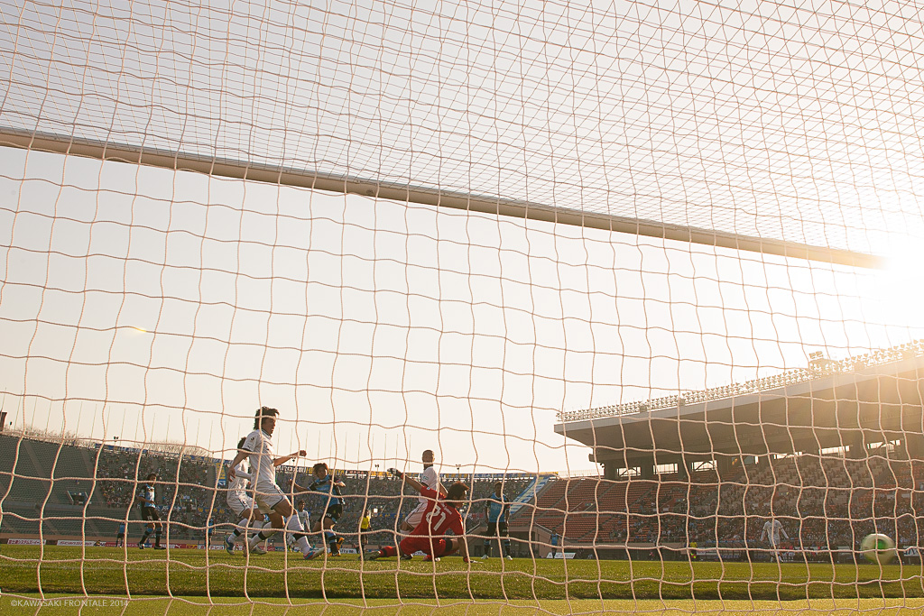 確かに2013年の大久保の得点はこれといった形で決まっているわけではなく、さまざまなシチュエーションから生まれている。ミドルシュート、カウンター、セットプレー、ワンツーからの抜け出し。そのなかでも特筆すべきはペナルティエリア内での得点だ。正確にパスをつないで崩すサッカーを目指しているフロンターレのチームカラーからすればゴール前での得点が増えるのは当然といえば当然だが、人が密集している狭いエリアで当たり前のようにシュートを決めるのはそう簡単なことではない。
