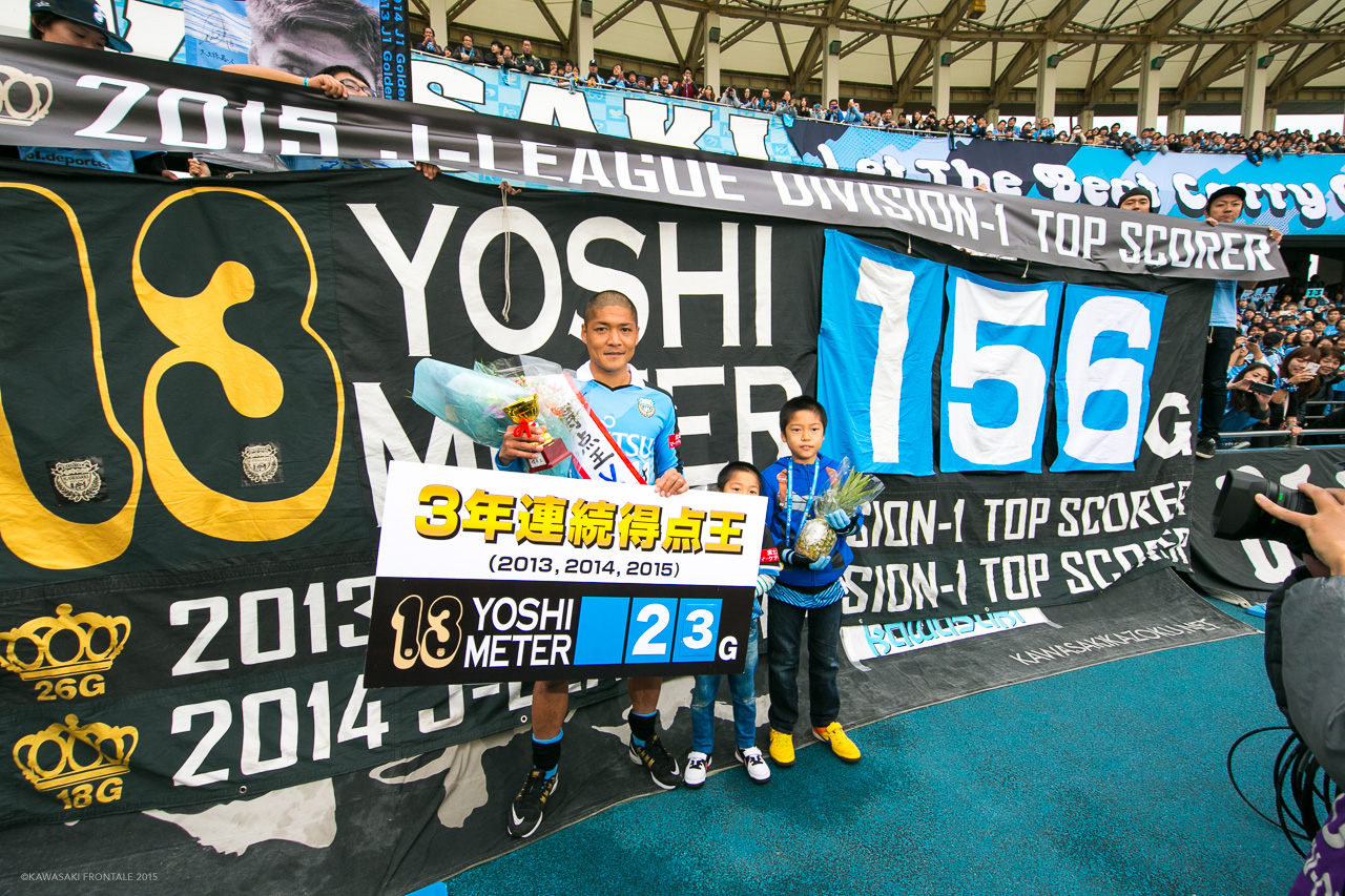 J1通算ゴール数は156。歴代ナンバーワンである中山雅史と佐藤寿人の157まであとワンゴールに迫って、2015年シーズンを終えた。