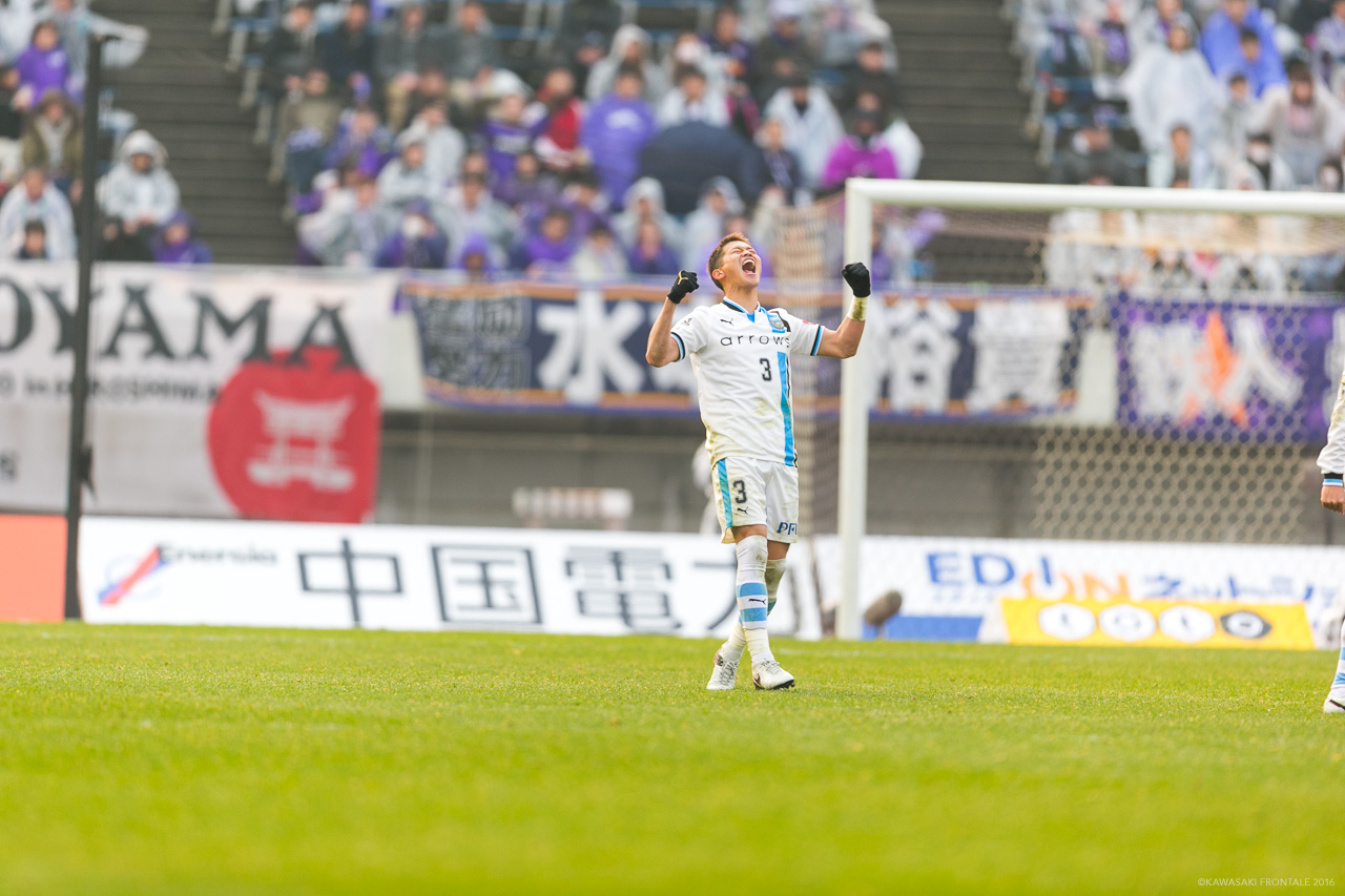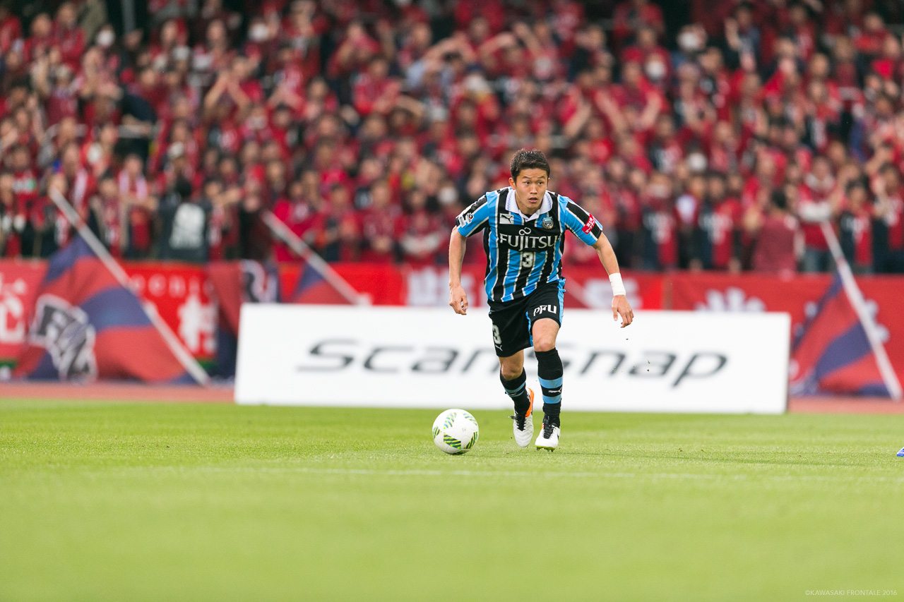 コンサドーレ札幌から完全移籍で加入したセンターバック。札幌では高い身体能力と1対1の強さを武器に若くしてレギュラーをつかみ取った。FC東京に期限付き移籍した昨シーズンはなかなか出番に恵まれなかったが、各年代別日本代表に選出されるなど、ポテンシャルの高さは誰もが知るところ。心機一転、2016年はフロンターレでのレギュラー獲りに挑戦する。