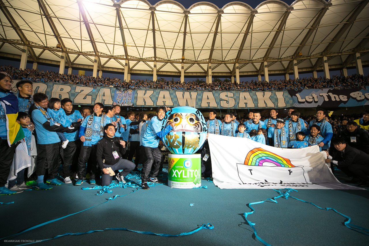 2017年鬼木達が監督に就任した。鬼木は、攻撃だけでなく守備でも魅せ、戦う気持ちを大事にし、練習から全力で取り組む厳しさから、隙のない戦い方を先頭切って引っ張って、チームを作ってきた。鬼木が監督として手腕を発揮したことは結果が物語っているが、JFLの時代からフロンターレで自らも選手として戦い、指導者となってからもクラブの歴史を一緒に作ってきた彼の元で初優勝が経験できたこともまた大きな意味があっただろう。