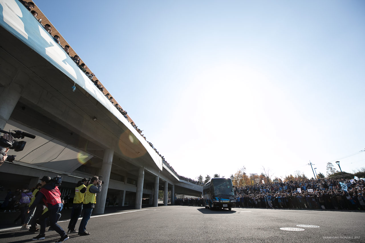 サポーターのバス待ちからの一体感も、もはや、あ・うんの呼吸のようだった。ただひとつ、鹿島の結果次第とはいえ優勝が左右される一戦だったことは事実であり、また、そうした試合を等々力で迎えられたのは初めてのことだった。そして、かけがえのないホーム等々力での初優勝は、本当に神様からのプレゼントという言葉が大げさでないくらいの意味があった。