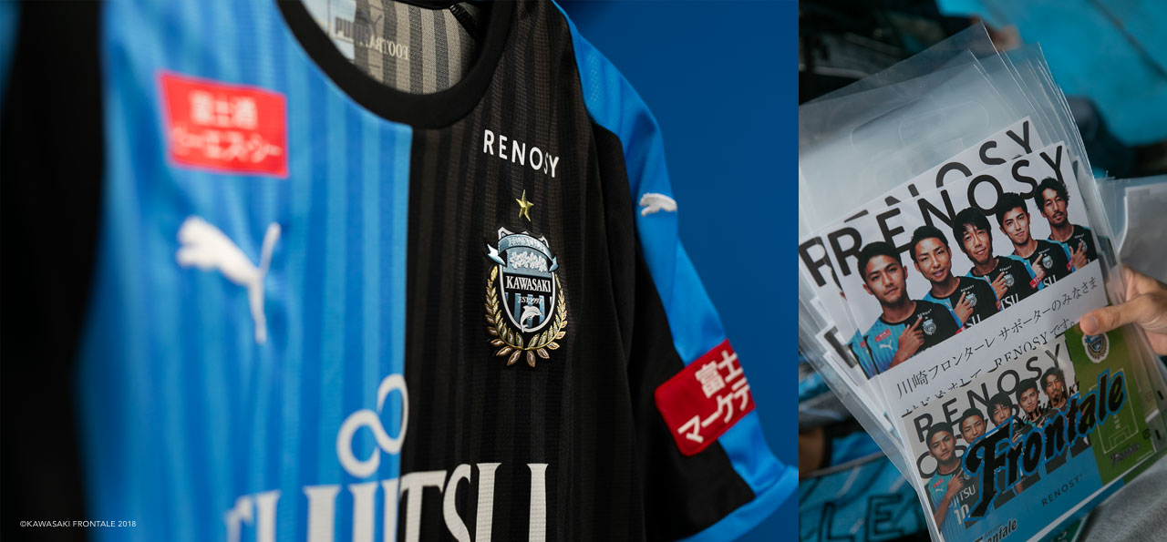 ── 9月15日よりフロンターレのユニフォームの左胸、クラブエンブレムの上に「Renosy(リノシー)」というスポンサーネームが入りました。