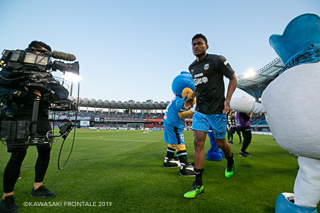 来日すると、熱烈な入団会見セレモニーに驚いた。自分がサポーターに受け入れられていることを感じ、挨拶では「本当に今、フロンターレの一員としてここに立っていることを幸せに思ってます」と率直な喜びを伝えた。